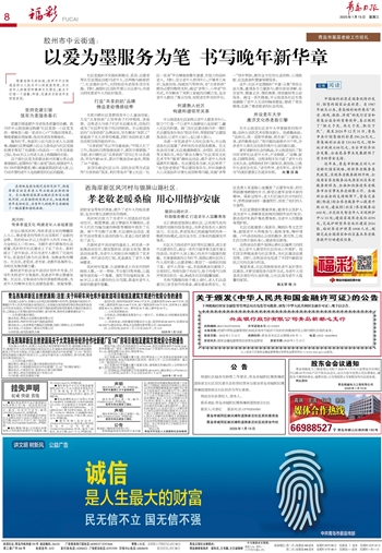 | 青岛日报社(集团)数字报纸(包括《青岛日报》、《青岛早报》、《青岛晚报》、《老年生活报》)的一切内容(包括但不限于文字、图片、PDF、图表、标志、标识、商标、版面设计、专栏目录与名称、内容分类标准以及为读者提供的任何信息)仅供青岛日报社(集团)读者阅读、学习研究使用,未经青岛日报社(集团)及相关权利人书面授权,任何单位及个人不得将青岛日报社(集团)数字报纸(包括《青岛日报》、《青岛早报》、《青岛晚报》、《老年生活报》)所登载、发布的内容用于商业性目的,包括但不限于转载、复制、发行、制作光盘、数据库、触摸展示等行为方式,或将之在非本站所属的服务器上作镜像。否则,青岛日报社(集团)将采取包括但不限于网上公示、向有关部门举报、诉讼等一切合法手段,追究侵权者的法律责任。 |