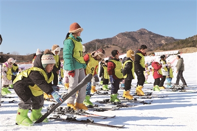 图为1月16日小朋友们在杨家山里片区滑雪场体验滑雪乐趣。 王 凯 摄影报道