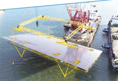 2024年11月28日,作业人员在波涛汹涌的渤海海面上,借助潮汐的力量,通过驳船调载,实现重量超过16000吨的上部组块与导管架毫米级精准对接,标志着由海洋石油工程(青岛)有限公司建造的全球最大变质岩潜山油田渤中26-6油田开发项目(一期)中心平台在渤海南部海域完成浮托安装。这一重大进展对推动渤海油田上产4000万吨、保障国家能源安全具有重要意义。