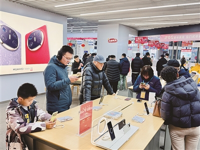 恰逢学生寒假假期,给孩子购买一款智能电话手表对很多家长来说十分合适。“想给孩子买个过年礼物。这几天研究了下国补政策,发现买个智能电话手表相当合适,价格优惠幅度也很大。”消费者宁丽娜说。