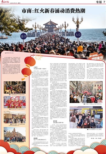这个春节假期,走上市南区的街头,浓浓的年味扑面而来。西部历史城区、东部浮山湾商圈等热门打卡地“人潮涌动”,人气旺带来实实在在的“消费火”,不断刷新的“流量”数据见证着市南区蓬勃的消费潜力和区域经济活力。