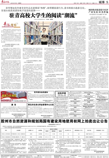 大学阶段是大学生系统学习知识的关键期,而阅读是主要的获取知识方式之一。在信息爆炸的时代,大学生的阅读有哪些特点和变化?又代表着怎样的文化风向?记者调查走访多所驻青高校,相关统计显示,如今大学生阅读正处于转型期,阅读行为、读书种类日趋多元化。不过,在大学生阅读书目中,经典作品仍然备受青睐。