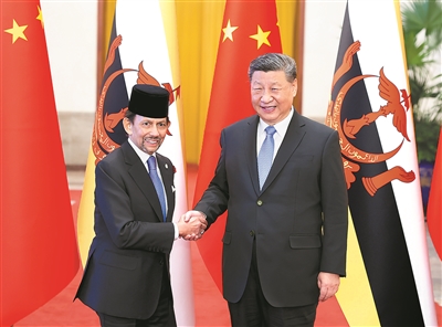 习近平指出,中文传统友谊源远流长。建交30多年来,双方不断深化政治互信,积极对接发展战略,各领域务实合作取得丰硕成果,在国际和地区事务中保持良好配合,树立了大小国家平等相待、互利共赢的典范,也为地区和平稳定和发展繁荣作出了积极贡献。中国和文莱共建命运共同体,顺应时代发展大势,符合两国和两国人民根本利益,开启了两国关系崭新篇章。双方要乘势而上,深化互利合作和战略协同,彼此尊重、坦诚互信,永远做隔海相望的好邻居、相互信赖的好朋友、共同发展的好伙伴。