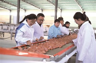 说话间,一台“长着眼睛”的机器人匀速“路过”。“怎么样,机器人用着还行吗?”郝小静一边观察机器人工作,一边询问陈锡佐。“好用,这一台机器人就能‘管着’这栋楼的十几万只鸡,它从早上5点就开始巡视,会拍照、能‘看病’,还能自动乘坐电梯上下楼、自动回充电站充电。在它的帮助下,鸡舍里的病鸡、弱鸡、产蛋率低的鸡都能被精准找到,极大减少了我们的人力劳动,还助力企业从传统的经验决策模式向科学的数据决策模式转变。”在陈锡佐的形容中,记者大致了解了这台机器人的功能。而这样“聪明”的设备,就是郝小静去年带着陈锡佐和王金宇去先进地区考察学习、采购回来的。