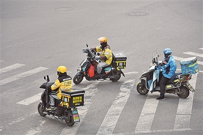 每到中午用餐高峰时段,大批外卖骑手奔忙于市北区台柳路上。近期,平台要给符合条件的外卖骑手缴纳社保的消息让大家很兴奋。