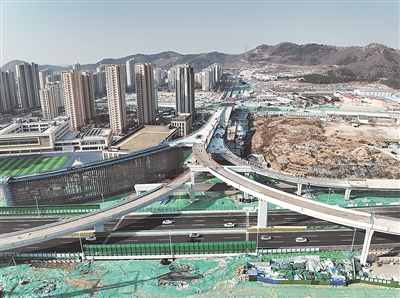 本报3月4日讯 走进2025年山东省重大实施类项目——青银高速增设唐山路互通及连接线工程(以下简称“唐山路快速路工程”)施工现场,一派热火朝天的繁忙景象映入记者眼帘。目前,每天有400余名建设者奋战在一线,保安全、提质量、抓进度,推动项目早日建成通车。从高空中俯瞰,桥墩高耸林立,桥面渐显雏形,主线隧道开挖支护工程即将完成,这条东西向的交通“大动脉”正迎着春光“生长”,不断刷新着城市界面。