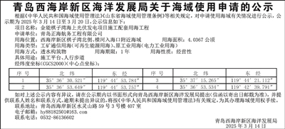 青岛西海岸新区海洋发展局关于海域使用申请的公示