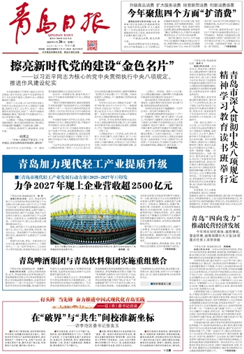 本报3月25日讯 近日,青岛市现代轻工产业专班印发《青岛市现代轻工产业发展行动方案(2025-2027年)》(以下简称“行动方案”),青岛将聚焦健康食品饮料、新型纺织服装等细分赛道,从提升创新力、优化供给体系、提升产业能级、优化产业生态等四方面发力,推动现代轻工产业品种引领力、品质竞争力、品牌影响力显著增强。力争到2027年,规上企业营业收入规模突破2500亿元。