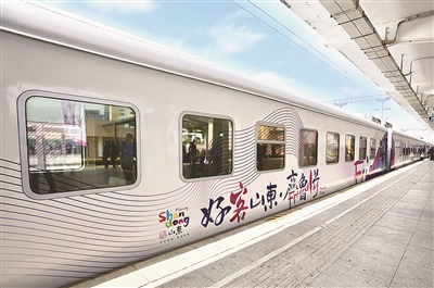 4月10日,K8281次“好客山东·齐鲁1号”旅游列车从济南站发车。这是全国首列省级政府主导、铁旅融合、路企联动、乘游共享的串联性专线旅游列车,在青岛经停蓝村和胶州两个站点。
