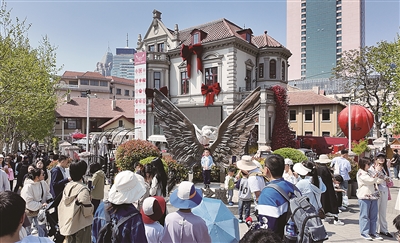 与此同时,街区商户也积极行动起来,集中发力创新场景设计,精心探索年轻化互动方式,力求以深度体验活动吸引人流、汇聚人气。比如,里院美术馆推出“里院花开”——中国艺术名家里院专题暨里院美术馆馆藏作品展,用艺术笔触描绘里院之美,还开展香薰石膏牌手绘制作、纸粘土制作等手作体验活动;青啤在中山路上设置拍照打卡装置,吸引众多游客拍照打卡,丰富市民游客独特的假期体验。