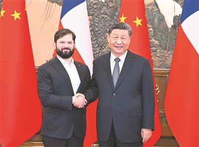 博里奇表示,智利高度重视对华关系。中国已成为智利最重要的贸易伙伴,双方合作造福了两国人民。智方将坚定奉行一个中国原则,期待与中方进一步拓展贸易、投资、人工智能等领域合作,高质量共建“一带一路”,密切人文交流,推动智中关系取得更多实实在在的成果。各国应坚持自由贸易和互利共赢,贸易不应只服务于一国私利,发动贸易战没有出路。智方愿同中方一道,坚定捍卫多边主义和联合国权威,坚持通过对话解决分歧,共同维护国际公平正义。