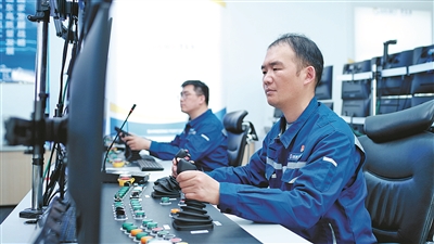 自动化改造把李丛这样的一线技术工人从重复、枯燥的劳动中解放出来。在西联公司已经工作15年的李丛仍清晰地记得,当他从门机操控室现场作业转到数智中心远控时所经历的巨大跨越——过去穿一双胶底皮鞋,戴一顶安全帽,风吹日晒是门机司机的“标配”;现在在办公室通过各种传感器掌握场地作业情况,一个人可轻松管控3台门机,与现场作业的感觉完全不同。