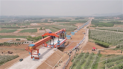 今年是项目建设的关键年,路基、桥梁、隧道等主体工程展开全面施工。目前,桥梁桩基已完成55%。全线11座隧道中,6座已进洞施工。其中,4月10日,位于西海岸新区张家楼街道北安子村北的潍宿高铁至青岛连接线北安隧道贯通,成为全线首条贯通的隧道。5月7日,随着长32.6米、重680吨的箱梁稳稳落在潍坊诸城市东北庄村特大桥青方台-Z1#桥墩上,项目完成首孔箱梁架设,拉开上部结构施工序幕。