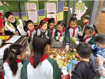 在市南区八大湖街道,由离退休干部组成的夕阳同乐志愿服务队长期致力于垃圾源头减量,通过垃圾分类手段实现垃圾资源化无害化减量化处置。他们在延福花园小区松树林里的空地动手搭建堆肥箱,凑齐铁锹、耙子,利用居民产生的水果瓜皮开始厨余垃圾堆肥。为使更多的人参与到垃圾减量绿色低碳队伍中来,志愿者还发动30多个家庭在家进行家庭堆肥。从延福花园小区到宁夏路第二小学再到南京路小学,志愿者们又研究果皮做酵素,发动更多的家庭参与到绿色循环的行列里来。现在,延福花园小区厨余垃圾分出率从原来的20%提高到90%以上,果皮菜叶等得到充分利用,实现源头减量,有效提升了小区环境质量。而辖区中小学的孩子们通过堆肥培育的百草园学习动植物知识,通过落叶堆肥、果皮酵素发酵锻炼动手能力,带动了家庭的参与。
