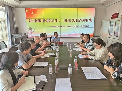■为进一步提升政府工作透明度,增进政府机关与人民群众的沟通联系和互动交流,推进法治政府、服务型政府建设,日前,城阳区司法局开展“法律服务惠民生,司法为民零距离”为主题的开放日活动,邀请民主党派代表、群众及企业代表、人民陪审员、执法监督员、律师、调解员等各界代表参加。