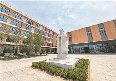 李沧区楼山二支路以西、创业路以南,橙色与白色相间的建筑主体格外显眼,这便是正在建设中的青钢片区九年制学校项目。学校西门小广场上,一尊孔子石像迎面矗立,这尊雕像不仅是校园文化的一部分,更是对古代先贤智慧的敬仰和传承;操场上,400米跑道、足球场初见雏形,排球、篮球场已经刷上了蓝色的地面漆……整个项目进入最后收尾阶段,相关的验收手续在准备当中。