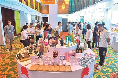 在香格里拉大酒店,“遇见青岛·与峰会共精彩”展吸引了众多与会嘉宾的目光。现场,乐聚智家机器人、张家楼油画、即墨织造等300余件极具代表性的展品,呈现了青岛这座现代化国际大都市在智能制造、文化创意和传统工艺等领域的多样风采。