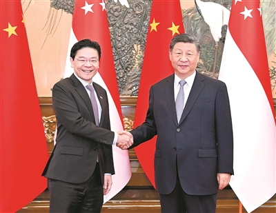 习近平强调,中新要牢牢把握两国友好大方向,始终从战略高度和长远角度看待和发展中新关系,确保航向不偏、动力不减。要筑牢中新友好政治基础,支持彼此核心利益和重大关切,以更高水平政治互信服务两国关系发展。中方欢迎新方继续深度融入中国发展,双方要深入推进共建“一带一路”合作,打造数字经济、绿色发展、人工智能等领域标志性成果,推动重大项目提质升级,续写高质量合作新篇章。要鼓励两国人民常来常往,深化人文交流合作,让中新友好更加深入人心。中方始终认为,和平、发展、合作、共赢的时代潮流不可阻挡,世界不能重拾霸权主义,不能被拖回丛林法则。中方愿同新方一道,站在历史正确一边、站在公平正义一边,共同倡导平等有序的世界多极化、普惠包容的经济全球化,推动世界走向和平、安全、繁荣、进步的光明前景。