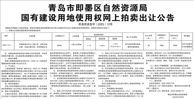 青岛市即墨区自然资源局国有建设用地使用权网上拍卖出让公告