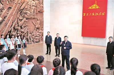 ■百团大战的历史壮举,充分展现了我们党在全民族抗战中的中流砥柱作用,充分展现了党领导的人民战争的磅礴力量。要讲好抗战故事,把伟大抗战精神一代代传下去。88年前的今天发生的“七七事变”,是中华民族全面抗击日本侵略者的起点,前事不忘、后事之师,到这里来就是接受精神洗礼。广大青少年生逢其时,要赓续红色血脉,树立强国有我的远大志向,做堂堂正正、光荣自豪的中国人,勇担民族复兴的时代大任