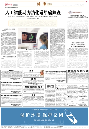 近日,记者从青岛市卫健委获悉,面对我国消化道早癌诊断率远低于发达国家的现状,青岛依托国家示范项目支持,由青岛市市立医院牵头,联合全市18家三级医院、10家二级医院及基层医疗机构,成功构建并运行了全国首个覆盖全市域、统一标准、统一规范的人工智能辅助“消化健康专科能力提升系统”。该系统以标准化数据和人工智能(AI)技术为核心驱动力,彻底革新了传统的消化内镜质控模式,实现了市域范围内消化内镜“检查标准化-诊断同质化-治疗规范化”的闭环管理,显著提升了区域消化道早癌的检出率和诊疗水平,其中,食管癌、胃癌、结直肠癌早期诊断率分别提高5.14、5.01、5.31个百分点,据估算,截至目前已节省医保资金2800余万元。