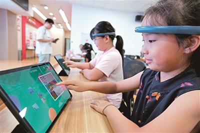 | ■7月17日,在山东省滨州市惠民县工人文化宫的暑期公益托管班上,孩子们在专业老师的指导下进行思维专注力锻炼。 新华社照片 |
