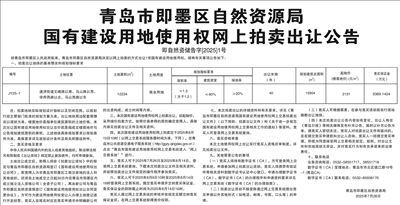 青岛市即墨区自然资源局国有建设用地使用权网上拍卖出让公告