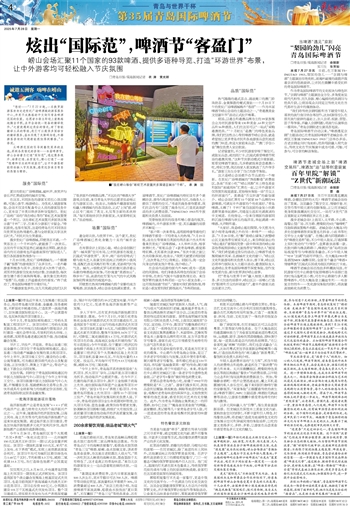 “外籍游客蛮多的,这几天我通过他们认识了很多国外的啤酒品牌。”不远处的“啤酒大亨”游戏点位前,来自青岛大学的志愿者张益畅正在与游客互动。他表示,为确保外籍游客能轻松融入啤酒城内的各项活动,正式“上岗”前,崂山区专门组织了英文、礼仪等方面的系统培训。“每天都能结识许多新朋友,大家都特别友好。”张益畅说。