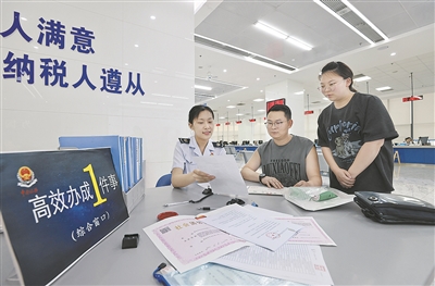 ■今年以来,国家税务总局青岛市市北区税务局在各办税厅持续优化“高效办成一件事”专区功能,科学优化办税流程,不断创新服务内容和方式,切实提升纳税人缴费人的办事体验和满意度。图为工作人员正在解答纳税人提出的涉税问题。 刘鸿瑞/文 万云军/图