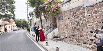除了沿海一线、八大关等青岛传统的婚拍地,近两年,老城区的大学路“火爆”起来,成为很多新人慕名而来的“网红路”,特别是大学路与鱼山路的拐角处,红色的围墙自带“复古风”,吸引了众多新人在此定格幸福瞬间。在大学路拍完婚纱照,新人们可以到附近的咖啡店品尝咖啡,青岛老城区厚重的文化味道似乎也包含在里面。