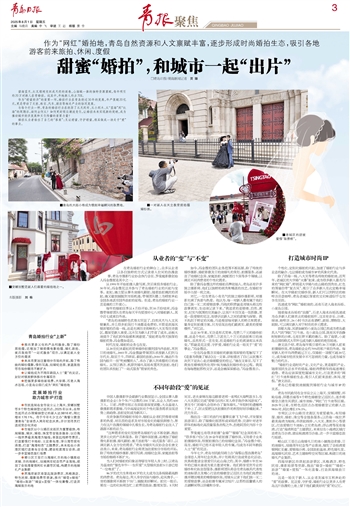 “婚拍行业是时尚产业、文化产业,更是朝阳产业,随着居民生活水平的提高,婚拍消费将保持高速增长趋势。青岛应该深度挖掘城市文化,打造更多的‘网红’打卡地和婚拍生态,吸引人们前来旅拍、休闲、度假。”唐文洁说。