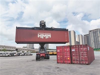 “我们园区目前一次4进1装箱用时二十多分钟就能完成,框架箱装载一般在四十分钟左右,一天可以装载150个集装箱。”国赫通汽车技术园负责人柴超表示。