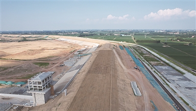 随着一层层土料被压实,大坝已“生长”至20米高。目前围坝填筑工作累计完成2000多万立方米,占总量的98%,已基本实现围坝全线合龙,施工重点任务转向围坝护砌等,其他如电力外线、变配电、信息化、机电设备安装等专业工程同步实施推进。