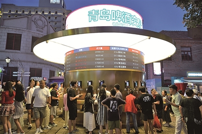 今年的青岛国际啤酒节里,“青岛啤酒交易所”成为老城会场(大鲍岛)的一个火爆场景,电子屏上实时跳动的成交量数据格外引人注目。据现场工作人员介绍,荔枝味啤酒销量稳居榜首,日均销售量稳定在一万毫升以上,堪称“青岛啤酒交易所”的“流量担当”。