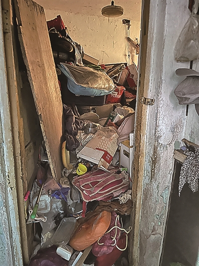 直到下午5时,屋内的杂物仍未清理完毕。“东西太多,今天清理不完,我们明天继续。”此时,工作人员的衣服已被汗水浸湿。