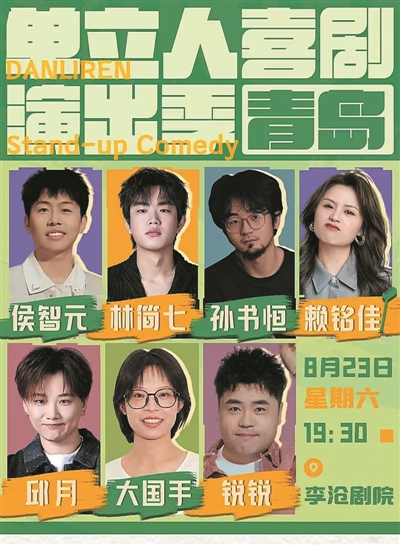 集结新锐笑匠,引爆喜剧之夜。2025“单立人喜剧演出季青岛站”8月23日将在李沧剧院开演。本场汇集了侯智元、林简七、孙书恒、邱月、大国手、锐锐等人气选手,结合当下年轻人的热门话题和喜剧人的个人感悟,为青岛呈现最好玩的单口喜剧大秀。