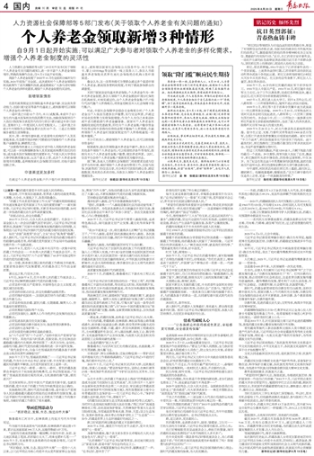 人力资源社会保障部等5部门发布《关于领取个人养老金有关问题的通知》~~~自9月1日起开始实施;可以满足广大参与者对领取个人养老金的多样化需求,增强个人养老金制度的灵活性