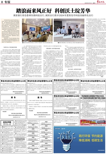 ~~~浦发银行青岛香港东路科技支行、城阳支行获评2024年度青岛市科技金融特色支行