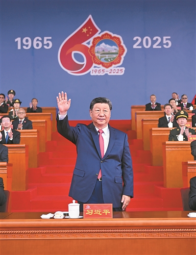 王沪宁发表讲话。他说,1965年9月,在党中央亲切关怀和党的民族政策光辉照耀下,西藏自治区宣告成立。这是西藏发展史上具有划时代意义的大事,巩固了西藏和平解放和民主改革的伟大成果,实现了西藏社会制度的历史性跨越。60年来,西藏经济社会全面发展,民族区域自治制度成功实践,民族团结日益巩固,各族人民生活蒸蒸日上,充分展现了中国共产党领导的坚强力量,充分展现了我国社会主义制度的显著政治优势。