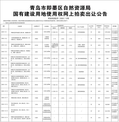 九、本次拍卖出让的详细资料和有关要求,详见《青岛市即墨区自然资源局国有建设用地使用权网上拍卖出让文件》(以下简称:拍卖出让文件)和《青岛市国有建设用地使用权网上交易规则(试行)》等资料。竞买人可登录网上交易系统查询。