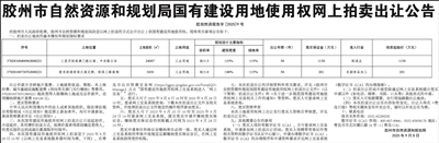 胶州市自然资源和规划局国有建设用地使用权网上拍卖出让公告