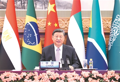 习近平指出,当前,世界百年变局加速演进,霸权主义、单边主义、保护主义甚嚣尘上。金砖国家作为全球南方第一方阵,要坚持弘扬开放包容、合作共赢的金砖精神,共同捍卫多边主义,维护多边贸易体制,推进“大金砖合作”,携手构建人类命运共同体。