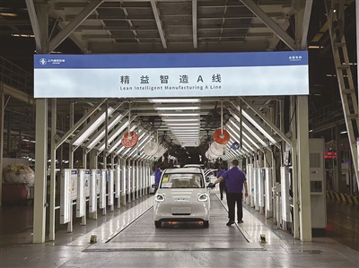 上汽通用五菱青岛分公司总装车间,一辆辆五菱宏光MINIEV四门版汽车完成最后一道生产工序后,从生产线缓缓驶出,等待质量检测。不远处,“高标准,严要求,确保产品零缺陷”横幅悬挂在车间上方,与智能化设备互为对照,呈现出一幅由传统制造迈向“精益智造”的转型新图景。