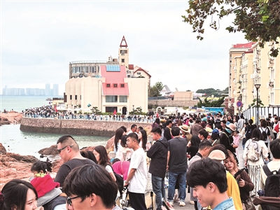 国庆假期接近尾声,青岛市南区琴屿路的人气却未因此而回落,蜿蜒的滨海步道上依旧游人如织,成为假期收尾阶段的“流量担当”。在此游览的旅客,不时举起手机自拍,定格与礁石、白浪同框的瞬间,尽情享受海滨漫步的惬意。