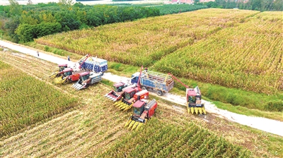 西海岸新区大场镇绿色增粮先行区内,合作社今年引进的履带式玉米收获机在关键时刻大展身手。10日下午,12台履带式玉米收获机趁雨停,开足马力在泥泞的田地里全力抢收,金黄的玉米在田间便脱粒进入货车,数台运粮车往返于农田和晾晒场之间。与此同时,青岛同富勤耕合作社30万平方米晾晒场和全区最大的烘干塔满负荷运转,4处烘干基地面向全镇开放,日烘干玉米合计达1490吨,可储存1.5万吨以上。当地对零散家庭种植户开放村委大院、乡村议事场及闲置厂房等场所用于湿粮晾晒和储存,组织镇机关干部抢收倒伏、积水田块,目前已收获秋粮4.4万亩。