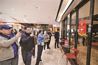走进营口路街区,虽然没有了旺季时的人声鼎沸,但熙熙攘攘的街区店铺林立,依旧烟火气十足,餐饮店前醒目的放心消费红旗和零投诉公示牌等专属标识引起媒体一行的关注。