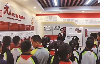 ■日前,在崂山区检察院“青葵·未检”工作室,小学生们上了一堂特殊的法治实践课。志愿者将常见的校园欺凌现象改编成沉浸式情景剧,让学生直观识别违法行为,在“角色扮演+现场解读”中了解法律知识。