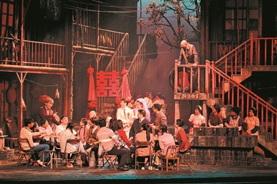 “这个向阳院/向着港口/向着大海/也向着太阳/那场景的不断变换/不是舞台在转动/而是太阳在运行/在每一天的日出和日落中/点燃了多少人间的烟火……”10月底,《烟火人间》赴重庆参加第十四届中国艺术节,涪陵观众李光辉观剧后写下这首长诗《向阳的里院》,表达对这部剧的高度认可。