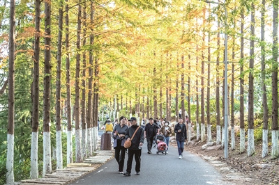 ■市民游客打卡世博园,欣赏园区美景。