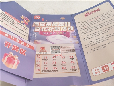 记者从淘宝官方了解到,该平台正在开展的“双11百亿补贴活动”是在线上进行,并未向消费者寄送此类刮奖卡。淘宝客服提醒,不要扫描卡片上的二维码,以免遭受财产损失。